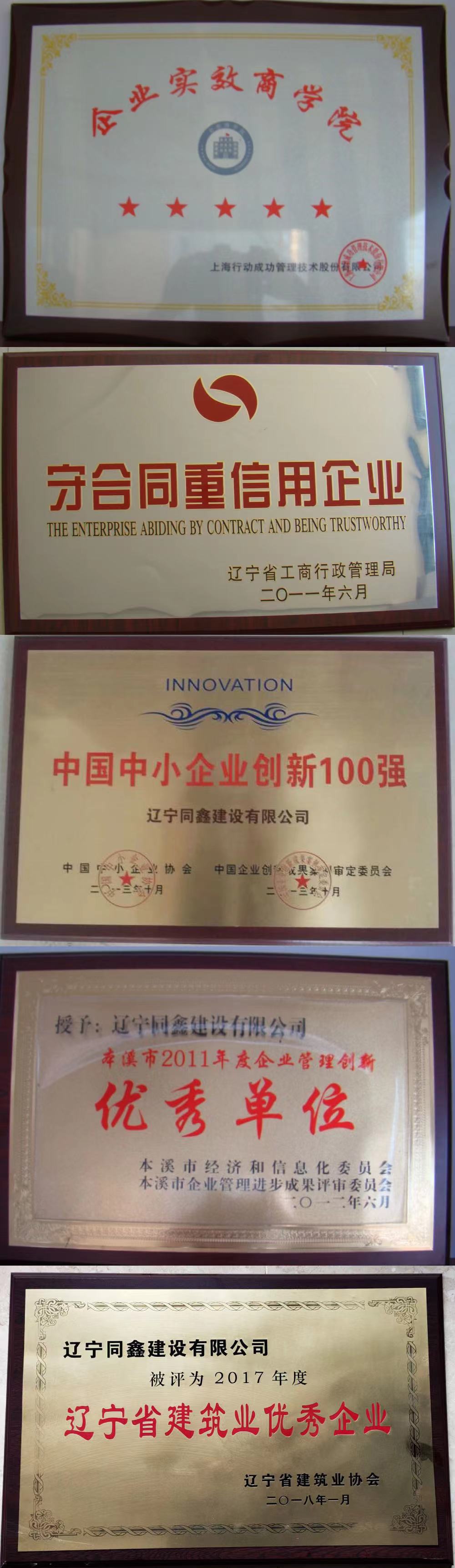 2016年9月 辽宁省建筑业优秀信用企业 2018年1月 辽宁省建筑业优秀企业